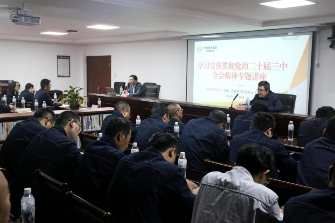 為深入學(xué)習(xí)宣傳貫徹黨的二十屆三中全會精神,準(zhǔn)確把握全會精神實質(zhì)和豐富內(nèi)涵,推動各項貫徹落實工作走深走實,11月20日,中國有色集團出資企業(yè)中色正元(安徽)新能源科技有限公司(簡稱:中色正元)黨委邀請中共中央黨校(國家行政學(xué)院)法學(xué)博士、中共安徽省委黨校(安徽行政學(xué)院)副教授于德作專題輔導(dǎo)講座。